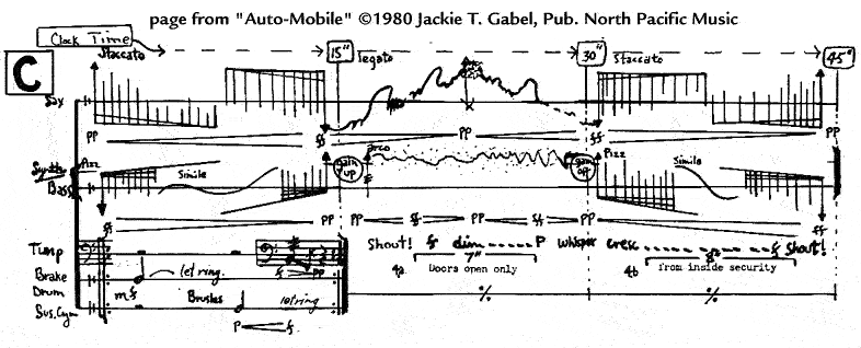 Auto-Mobile from original poetry for tenor sax, processed string bass and narrator/percussionist on a percussion battery infused with junked car parts, on the The Third Angle New Music Ensemble's Gagliano Records (1999) release, The Junkyard Concert
